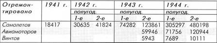 Примечание: К 1.9.43 г. в среднем каждый самолет подвергался ремонту 7 раз и на каждом самолете дважды производился ремонт моторов.