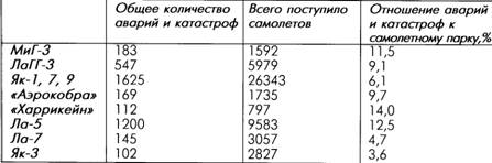 2. Значительное снижение аварийность последних модификаций истребителей Як-3 и Jla-7 по сравнению с их прототипами (соответственно Як 1,7,9 и ЛаТГ-3, Ла-5) достигнуто за счет приобретенного опыта летной эксплуатации и технического обслуживания и устранения при проектировании и в производстве ранее выявленных недостатков и дефектов.