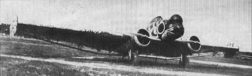 Посадочная скорость 77 км/ч при полетном весе в 4200 кг. При существующих шасси (без масляно-пневмати- ческой амортизации) при недостаточно точном приземлении самолет начинает «козлить» – прыгать. Причем прыжки иногда возрастают до угрожающих размеров. Приходится «давать газ» и уходить на второй круг.