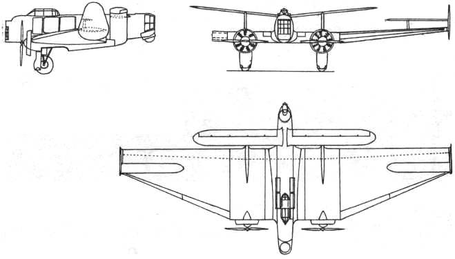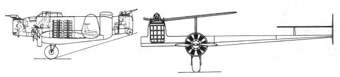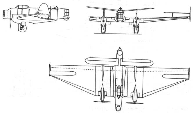 Вес винтомоторной группы велик. Он составляет 25,5% полетного веса и 40,8% веса пустого самолета, чего мы не встречаем в уже имеющихся самолетах. Таким образом, данная схема самолета является благоприятной с тактической точки зрения, но в весовом отношении не оправдывается. Постановка двух дополнительных полуфюзеляжей для крепления костыля и оперения и убирания шасси увеличила вес шасси и костыля, не оказав влияния на снижение веса оперения, фюзеляжа, винтомоторной группы или крыла.