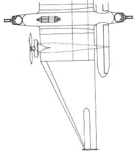 Моторы расположены по бокам фюзеляжа в передней кромке крыла. Моторные коки вытянуты поперек всего крыла и в задней части схватывают ферму с двумя костыльными колесами, сверху которых установлены стойки, служащие креплением и осью вращения килей. Средняя часть моторного кока используется как обтекатель для убирающегося в полете шасси.