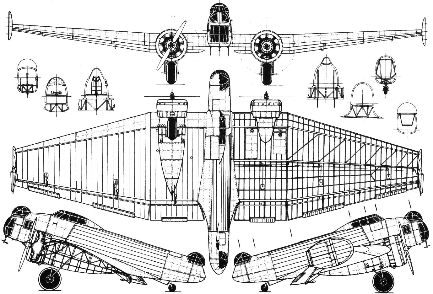 Фюзеляж овальной формы из труб, обтянут полотном, башни для стрелков обшиты электроном или дюралем.