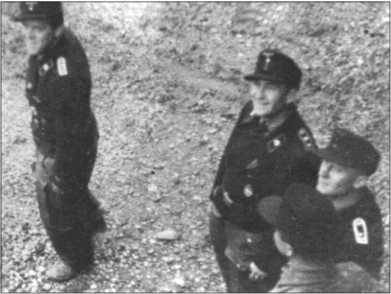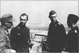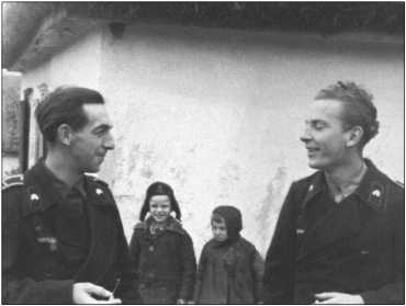 Фанен-юнкер-фельдфебель Ханс Левандовски (слева на фотографии) разговаривает с неизвестным унтер-офицером. Оба русских мальчика на заднем плане уже в зимней одежде. Левандовски погиб, будучи лейтенантом, в 1945 году в 509-м «тигровом» батальоне.