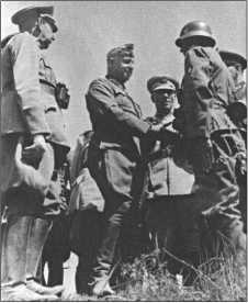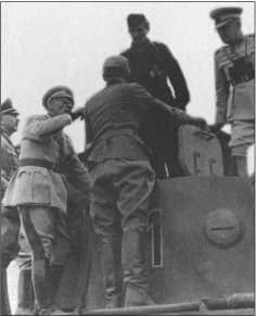 На боевых учениях среди многих зрителей турецкий генерал Тойдемир и генерал-майор Фрайхерр фон Функ из 7-й танковой дивизии. Командует боевыми учениями генерал-фельдмаршал Манштейн.