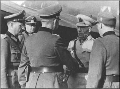 Генерал танковых войск Кемпф приветствует турецкого генерала Тойдемира. Слева от него стоит генерал-майор Шпайдель, начальник штаба, справа от генерала Кемпфа офицер горных войск в качестве переводчика. Видны открытые занавески на иллюминаторах Фокке-Вульфа-200, на котором прилетела турецкая делегация.