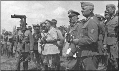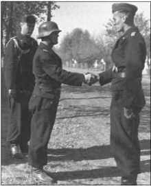Генерал-фельдмаршал фон Манштейн принимает доклад солдата. Переводчик, переводит для турецких гостей.