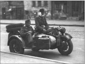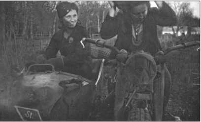На постое в Знаменке. Сестры Хала и Мария хорошо выдержали тест-драйв на мотоцикле, который им предоставили Альфред Руббель и Хайно Кляйнер.