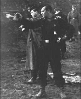 Офицерские стрельбы в Знаменке, на фотографии на переднем плане фанен-юнкер-унтер-офицер фон Хагемайстер с командиром графом фон Кагенеком соревнуются в стрельбе из пистолета Р38.