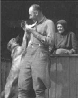 Знаменка осенью 1943 года. Хаупт-фельдфебель Хаазе кормит собаку.