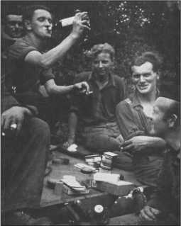 Командиры «Тигров» за выпивкой. Слева направо: неизвестный, Риппль, Фендезак, Книспель, Кляйнер, Тессмер, Руббель, Юнге, Эрдманн, неизвестный, Бузе и Вольфф.