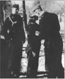 Клеменс граф фон Кагенек (в пальто) как раз выстрелил из своего пистолета, затвор его пистолета еще сзади. Сбоку за ним обер-лейтенант Сменд. Справа капитан инженерной службы Гросс, ремонтник Нойберт, в пальто Унбек, крайний справа лейтенант Хасс.