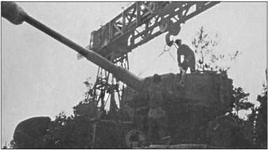 Ремонт с портальным краном в полевых условиях. Он мог поднять до 16 тонн, так что башня «Тигра» могла быть поднята с платформы.
