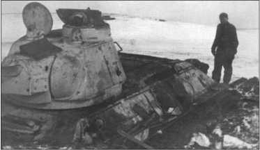 Февраль 1944 года перед боями за котел в Черкассах. Гусеницы и ведущее колесо забиты снегом и льдом.