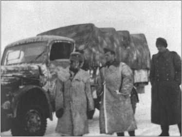 Солдаты полувзвода снабжения в толстых меховых шинелях. Без постоянного подвоза горючего и материалов, который обеспечивали солдаты полувзвода снабжения, ни один «Тигр» ни ехать, ни стрелять не мог.