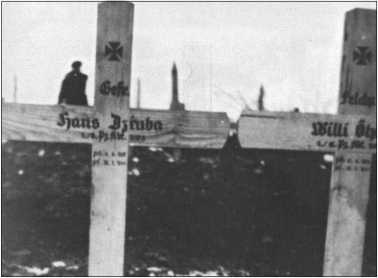 Ефрейтор Ханс Дцруба, фельдфебель Вилли Оелс и еще два товарища стали жертвой атаки партизан на ремонтный полувзвод 1-й роты 503-го тяжелого танкового батальона 14 января 1944 года у Жмеринки/Винницы. На фото могилы двух из четырех павших солдат.