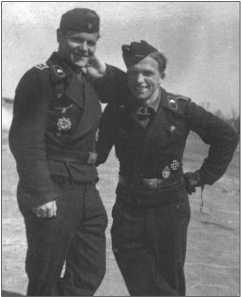 Ханс Фендезак (слева на фотографии) и Курт Книспель были хорошими друзьями. Оба были очень успешными командирами «Тигров» и уничтожили много танков и противотанковых пушек.