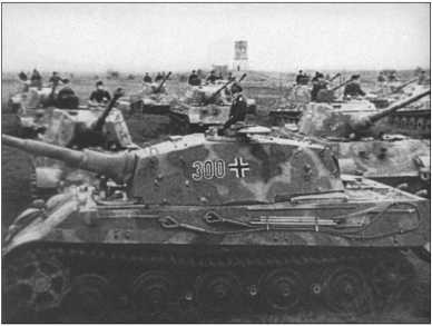 На смене 1943–1944 годов батальон многими эшелонами получил полный комплект новых «Тигров I». Тигры в районе Жмеринки были окрашены в зимний камуфляж.