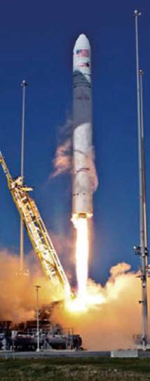 Американская «частная» ракета-носитель Falcon 9 компании SpaceX (вверху) в 2013 г. трижды стартовала в космос. В результате мартовского запуска на орбиту был выведен грузовой корабль Dragon (в середине), проработавший в составе МКС с 3 по 26 марта 2013 г. Другой американский «частный» носитель, Antares от Orbital Sciences Corp. с российским ЖРД НК-33 на первой ступени (нижнее), в 2013 г. летал в космос дважды. Первый раз в апреле – с макетным образцом грузового корабля Cygnus и четырьмя экспериментальными КА, а второй раз в сентябре, уже с «боевым» кораблем Cygnus (внизу), проработавшим в составе МКС с 29 сентября по 22 октября 2013 г.