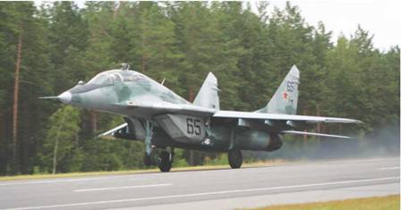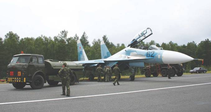Это было реализовано в августе прошлого года в ходе планового оперативно-тактического учения войск Западного оперативно-тактического командования (ЗОТК) Военно-воздушных сил и войск противовоздушной обороны Вооруженных Сил Республики Беларусь. 4 августа 2007 г., в соответствии с замыслом летно-тактического учения, с 61-й истребительной авиационной базы (аэродром «Барановичи») взлетели двухместные истребители МиГ-29УБ и Су-27УБМ, которые направились в один из районов республики для отработки посадок и взлетов с использованием аэродромных участков автодорог.