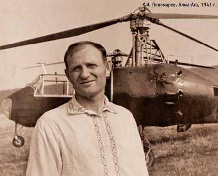 В конце 1942 года по приказу Народного комиссариата авиационной промышленности К.И. Пономарев был принят по совместительству на должность летчика – испытателя геликоптеров в ОКБ-3 И.П. Братухина. Нужно сказать, что испытывать еще несовершенные винтокрылые машины не каждому было под силу. Ведущий инженер ОКБ Д.Т. Мацицкий так отозвался о Пономареве: «Это был мужественный и смелый летчик, обладавший огромными способностями организатора в деле освоения новых конструкций авиатехники. Он всегда тщательно готовился к испытательным полетам и выполнял их успешно, не считаясь с трудностями».
