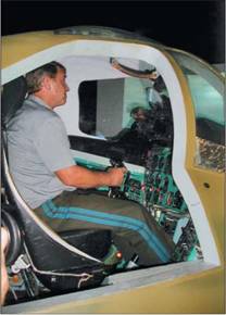 Е.И. Игнатов в кабине тренажера вертолета Ми-24П
