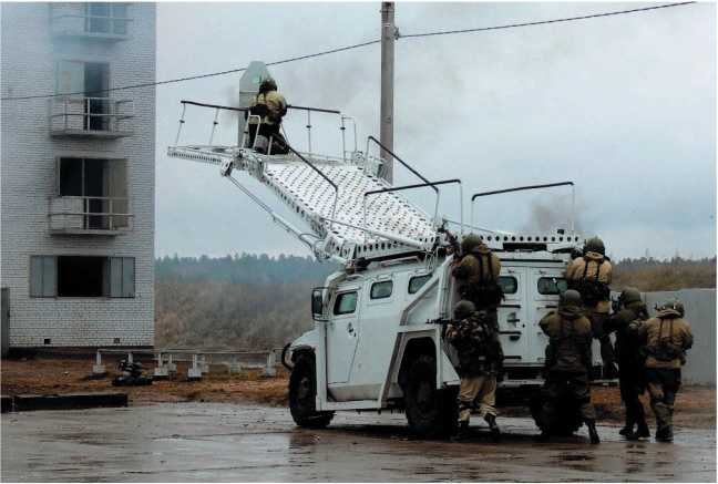 Спецавтомобиль «Тигр» «Абаим-Абанат» с развернутым штурмовым трапом.