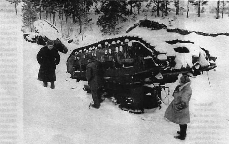 Командование 3-й ударной армии осматривает перевернувшиеся "Матильды" из состава 170-го отдельного танкового батальона. Февраль 1942 года