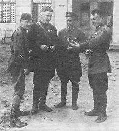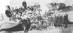 Командир 51-го ТБАП п-к Д.П.Юханов (крайний справа) с офицерами 2-й ДЭ. Второй справа и крайний слева - будущие командиры полка к-н Н.А.Косихин и м-р А.И.Аверьянов