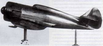 Полноразмерный макет истребителя ИП-2 (ДГ-54). Под фюзеляжем макета смонтирован выпускаемый радиатор водяного охлаждения двигателя М-100