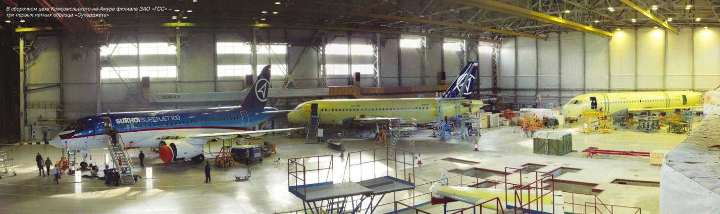 В сборочном цехе Комсомольского-на-Амуре филиала ЗАО «ГСС» три первых летных образца «Суперджета»