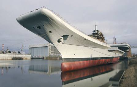 В начале этого года «Взлёт» уже обращался к судьбе бывшего ТАВКР «Адмирал Флота Советского Союза Горшков», модернизируемого по заказу индийских ВМС в авианосец типа STOBAR, т.е. обеспечивающий укороченный, с помощью носового трамплина, взлет самолетов и их посадку на аэрофинишер (см. «Взлёт» №1-2/2009, с. 44-49).