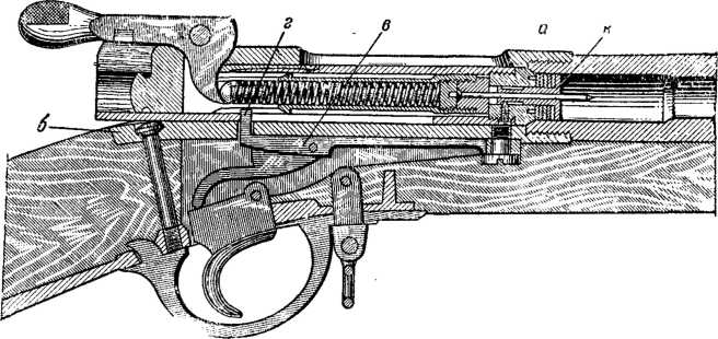 Рис. 75. Положение частей винтовки Карле перед выстрелом.