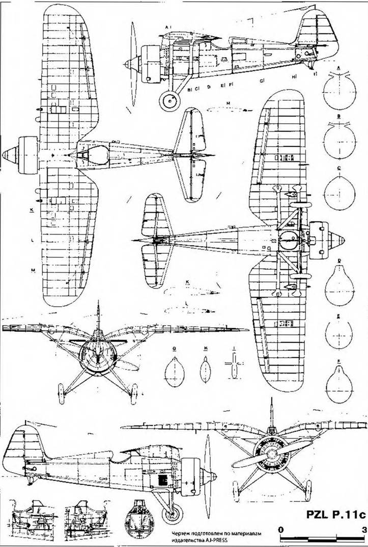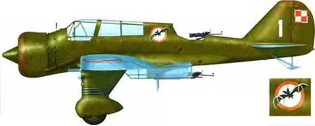 PZL Р. 11с подпоручика Йозефа Дудыла из 113-й AЭ ВВС Польши. Аэродром Понятов, сентябрь 1939г. Накануне боевых действий опознавательные знаки на верхней части крыла были закрашены.