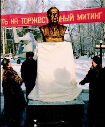 Н.М. Миль и Е.М. Миль открывают памятник М.Л. Милю на Казанском вертолетном заводе. 1997 г.