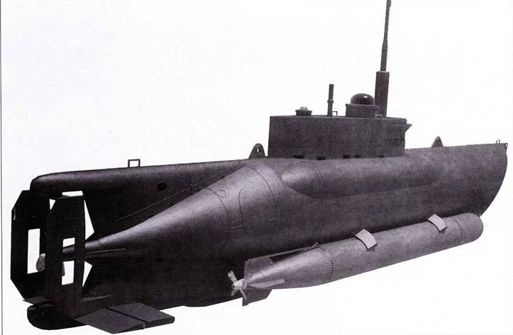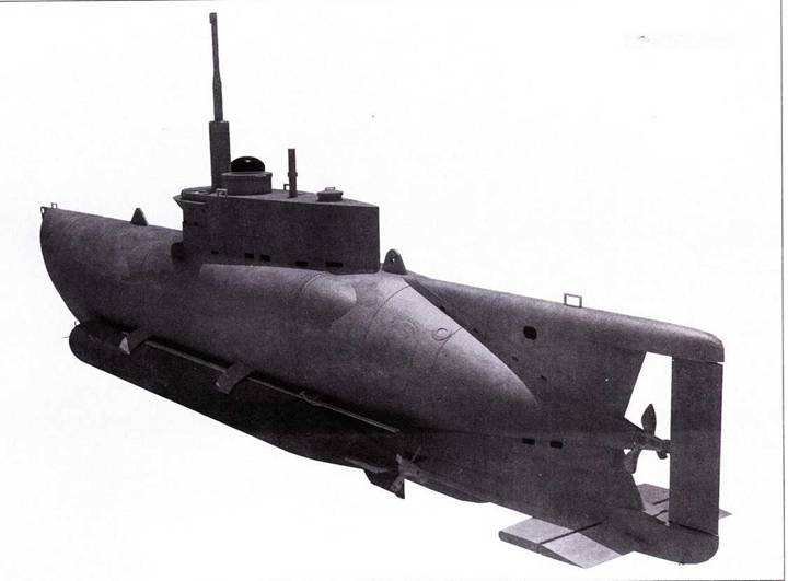 Сверхмалая подводная лодка типа Seehund с гидродинамической трубой на винте.