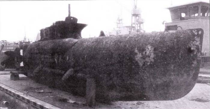 Поднятия со дна сверхмалая подводная лодка типа XXII В5 Seehund.