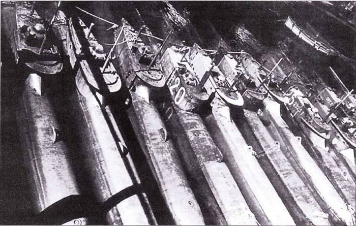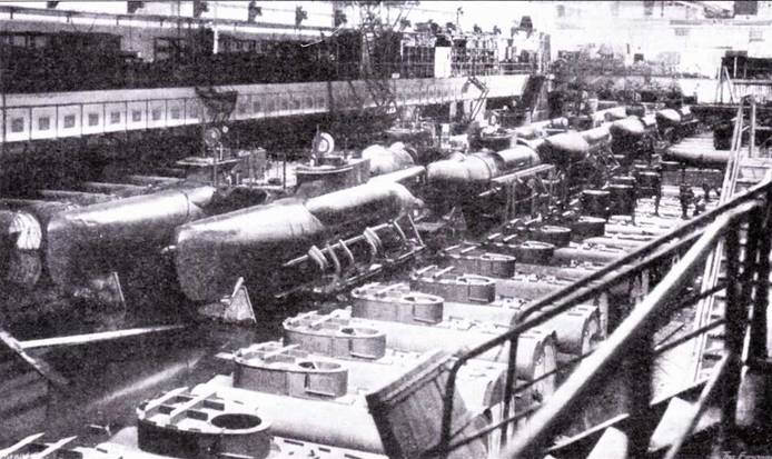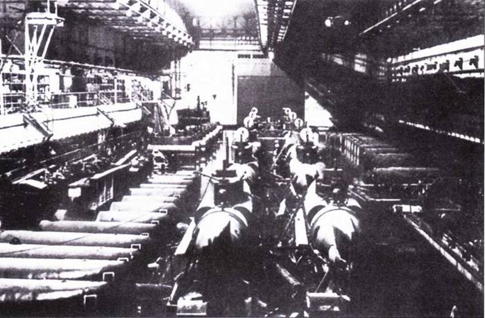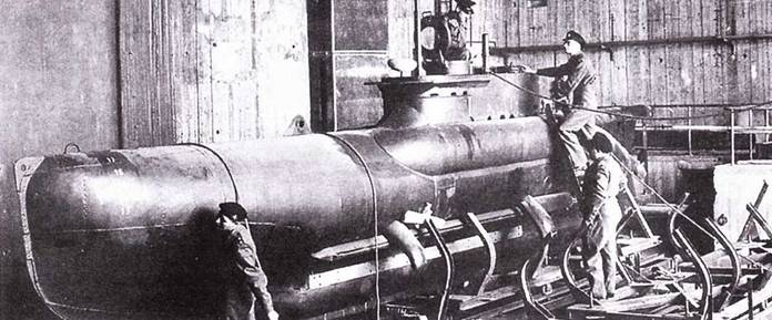 Сборка сверхмалых подводных лодок тип XXVII В5 Seelund в бетонном бункере завода Дойче Веерке в Киле.