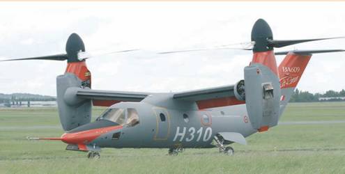 Наверное, главной новинкой нынешнего авиасалона в Ле-Бурже стал впервые представлявшийся публично американо-итальянской компанией «Белл-Агуста» (Bell/ Agusta Aerospace Company, BAAC) первый в мире коммерческий конвертоплан BA609. Созданный по схеме конвертируемого военно-транспортного аппарата V-22 «Оспри», с 2005 г. поступающего на вооружение ВВС и корпуса морской пехоты США (подробно о нем – см. «Взлёт» №10/2006, с. 10-21), он более чем втрое легче его по взлетной массе и рассчитан на перевозку девяти пассажиров или 2500 кг груза при двух членах экипажа на расстояние до 1300 км с крейсерской скоростью до 510 км/ч на высотах до 7500 м. При этом, как и его военный предшественник, BA609 может взлетать вертикально (как вертолет) или с коротким разбегом. Для этого, по образу и подобию «Оспри», он оснащается на концах крыла поворотными гондолами турбовинтовых двигателей, приводящих во вращение трехлопастные жесткие воздушные винты большого (7,8 м) диаметра (у V-22 винты имеют диаметр 11,58 м).