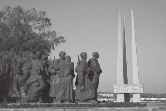 Одним из первых величественных монументов, установленных на белорусской земле, является памятник воинам Красной Армии и партизанам, погибшим в годы Великой Отечественной войны, возведенный в центре Минска в канун 10-летия освобождения Беларуси от германских захватчиков в 1954 г. Сорокаметровый гранитный обелиск увенчан трехметровым орденом Победы и символизирует величие подвига воинов, партизан, подпольщиков, всех советских людей.