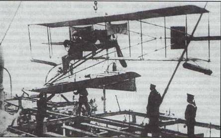 Подъем гидросамолета ’Кертисс D" на борт крейсера "Кагуп". За штурвалом В. Утгоф