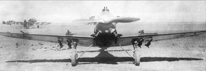 Если об использовании УТ-1б в 23-м ап ВВС ЧФ до сих пор не упоминалось в печати, то о 46-м ап ВВС ЧФ (неофициально э'ги полки называли штурмовыми) отрывочные сведения периодически появлялись на страницах книг и журналов. Этот авиаполк начал формироваться во ВМАУ им. Сталина в г. Моздок 10 мая 1942 г. в двухэскадрильном составе (20 самолетов). Первоначально для этого выделили только три дня. Учитывая плохую погоду для перелета в г. Ейск и задержки с поступлением материальной части из мастерских ВМАУ, окончательный срок формирования перенесли на 21 мая. Командование полка и эскадрилий было назначено из переучивавшихся во ВМАУ на новую технику летчиков- офицеров, окончивших Военно-морскую академию им. Ворошилова в 1941–1942 гг., и инструкторов училища. Это: командир полка м-р М. П. Михайлов, заместитель командира полка к-н Степанов, командиры эскадрилий к-ны А. И. Каличев и Ф.Н. Макаров, их заместители ст. л-т Ф. Е. Шеховцев и к-н Е В. Павлов, командиры звеньев ст. л-ты П. А. Евдокимов и Ю. Д. Никольский, л-т Н. И. Маслов, мл. л-т А. В. Макаров. Летчики назначались из числа курсантов — выпускников училища. Причем последние экзаменационные полеты у них принимались во время формирования полка. Это: сержанты А. С. Фокин, А. С. Реука, В. В. Прозор, В. И. Сацук, А. С. Катков, В. А. Соляник, И. Г Соколов — в первой эскадрилье. А во второй — сержанты А. П. Смирных, И. С. Тутов, Р. С. Азарпов, Д. А. Юдин, В. И. Щербаченко, А. М. Косоротов и В. М. Куликов. Материальная часть — 21 УТ-1б, переданные полку из мастерских училища, были вооружены двумя ШКАСами и четырьмя РС-82 (впоследствии из-за малого запаса PC крайние балки технический состав полка переделал под подвеску двух авиабомб АО-10). Качество подготовки самолетов и приемка их в часть определялись сжатыми сроками формирования. Поэтому устранить задержки на пулеметах, вызванные примитивностью установки оружия, и пристрелять РО-82 не представлялось возможным. 21 мая всем составом 46-й ап перелетел на аэродромы Семеновка и Кухаревка, неподалеку от г. Ейска, и вошел в состав ВВС ЧФ. Тренировки в полетах на пилотаж и боевое применение продолжались на Ейских аэродромах до 25 июня. Техника пилотирования УТ-1б, как отмечалось в отчете по испытаниям, оказалась сложной. Допущенная летчиком ошибка могла привести к трагическому исходу. Так, 25 мая 1942 г. в дневном тренировочном полете при перестроении пары (над водой на высоте 200 метров) ведомый — ст. л-т Маслов — увеличил крен более необходимого, произошло падение скорости, и машина сорвалась в штопор. Самолет упал в воду, разбился и затонул, летчик погиб. А 12 июня из-за позднего начала вывода из пикирования при ночной стрельбе ударился колесами о землю и разрушился УТ-1б с-та Куликова, который при этом получил ранения. 31 мая по приказу командующего ВВС ЧФ (№ 0068) 46-й ап вошел в нештатную авиационную группу * с подчинением командующему Азовской военной флотилией.