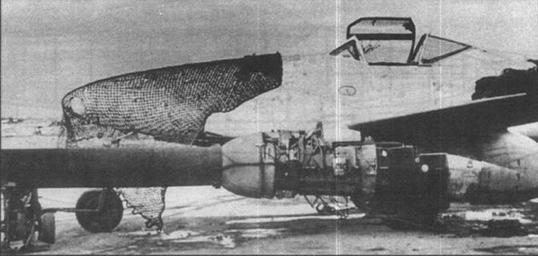 Первый Me 262В-2а получил локатор, как у Me 262B-la/Ul. Впервые он поднялся в воздух в марте 1945 г. "Оленьи рога" антенны снижали максимальную скорость на 60 км/ч. Эту проблему неоднократно пытались разрешить. В результате появилась антенна "Утренняя звезда", установленная в носу самолета. Это позволило получить прибавку в скорости 50 км/ч. Но в конце-кон- цов решили остановиться на локаторе сантиметрового диапазона FuG 240 "Берлин", антенна которого размещалась под пластиковым обтекателем. Увеличение воздушного сопротивления с этим локатором было незначительным, если вообще было. К моменту полного краха "третьего рейха" Me 262В-2а с локатором "Берлин" был на окончательной стадии сборки. Он должен был сохранить стандартное вооружение из четырех 30-мм пушек МК 108, кроме того планировалось установить две такие пушки под углом к горизонту по типу "шраге музик". Это позволяло поражать вражеские бомбовозы снизу в самую уязвимую их часть – двигатели и бомбоотсеки. ME 262С