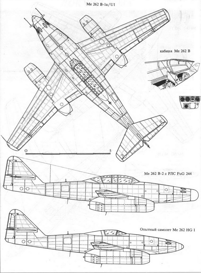В ноябре 1944 г новый самолет был поставлен в III (Erg.)/JG 2 (запасная группа – бывшая 262-я испытательная команда). От обычного самолета Me 262В-1 отличался установкой второго кресла пилота на месте заднего основного бака, что потребовало смонти-ровать на самолете так называемые "Викингер- шифф" – пилоны для двух 300-л баков. Управление стало двойным. Пушечное вооружение было сохранено. Всего было поставлено 15 таких самолетов, а последующие уже переделывались в двухместный ночной перехватчик, получивший обозначение Me 262B-la/Ul.