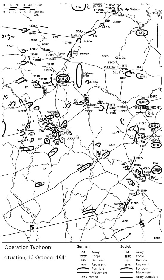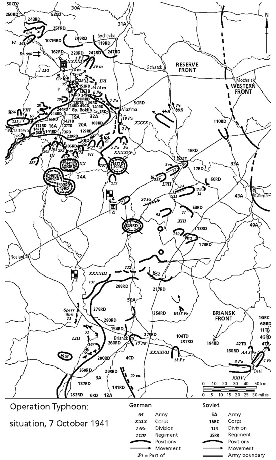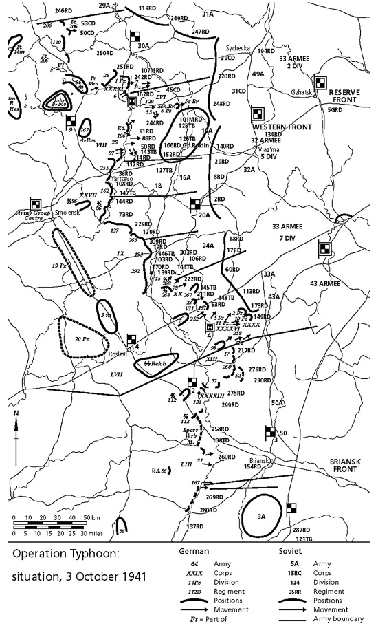 Лишь тогда советское командование решило сосредоточить свои усилия на нейтрализации Гудериана, облегчив таким образом действия остальным соединениям фон Бока. Мы не будем здесь рассматривать действия 3-й и 4-й танковых групп, которые также добились значительных успехов в первый же день наступления. Главным результатом боев 2 и 3 октября было то, что Западный и Брянский фронты попросту разлетелись на куски.