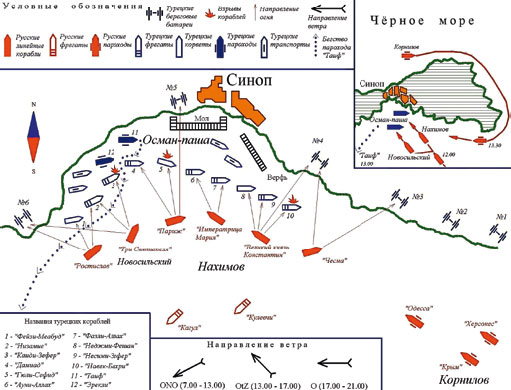 Карта-схема Синопского сражения. 18 ноября 1853 г.