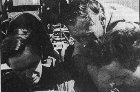 Летники-испытатели ГК НИИ ВВС Герои Советского Союза НИ .Стогов (в кабине), А.С.Бежевец и В.Н. Кондауров изучают F-5E «Тайгер II».