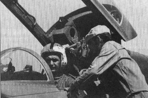 Герой Советского Союза Н. И. Стогов перед вылетом на F-5E «Тайгер II»