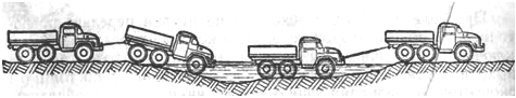 Рис. 15. Преодоление брода несколькими автомобилями, сцепленными между собой.