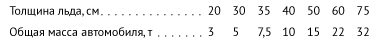 1. Если нет сведений о толщине льда и указаний дорожной службы о допустимой для проезда общей массе автомобиля, необходимо, отступив от берега несколько метров, прорубить ломом лунку и определить толщину льда.