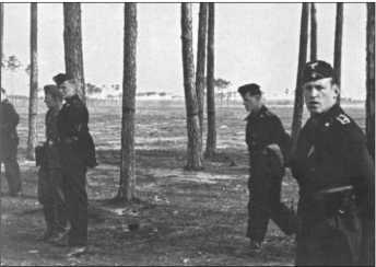 Групповая фотография с большим количеством пулеметных лент. Слева направо: Эрнст Белох, Ханье Тайсен и Георг Тост, который долгое время был водителем в танке Альфреда Руббеля. Белох, в звании фельдфебеля, 19 октября 1944 года в 509-м тяжелом (тигровом) танковом батальоне был награжден Немецким крестом в золоте.